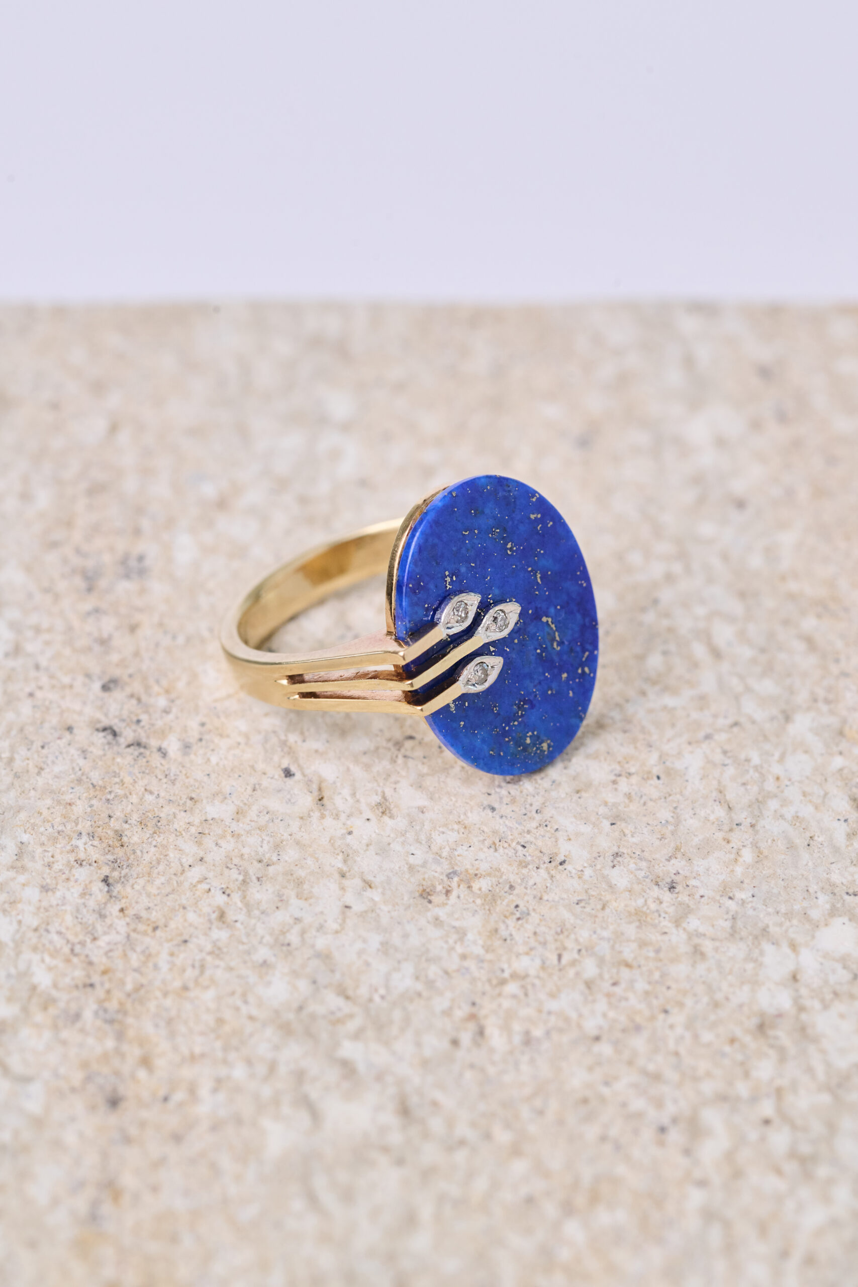 ANILLO AÑOS 60/70 DE ORO AMARILLO CON LAPISLÁZULI Y DIAMANTES