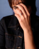 Anillo de diamantes, oro blanco y rosa de 14k, originario según las marcas, de los Países Bajos. Presenta dos diamantes principales enfrentados, engastados en bisel, unidos por una banda curvada que resalta una línea de diamantes  pequeños dispuestos en pavé.