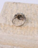 Anillo de oro blanco 14k. Cabeza redonda, engastada con doce diamantes octogonales. En el centro, un anillo octogonal de crisoprasa, con un diamante central engastado dentro de un un marco octogonal giratorio, Rodeados de volutas engastadas con diamantes. Años 40.